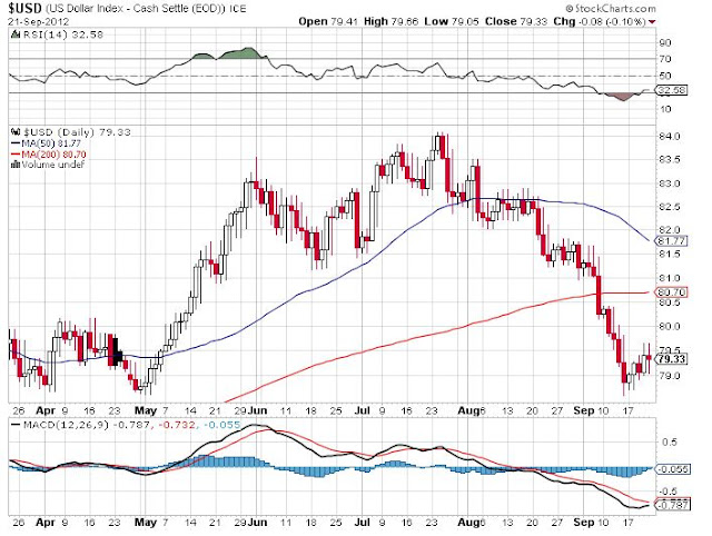 Larry also cites the rather mild reaction of gold to QE3, to wit, that we have not reached new highs in gold price.But, gold prices have not moved a lot, though they moved some and the printing is not yet under way.We saw the concerted move by various countries, so we know that those expectations were correct. The US Dollar is moving up and the Euro is falling again. The EU is also going to "SANITIZE" the newly created money and yes, that may delay the inflationary response to it.